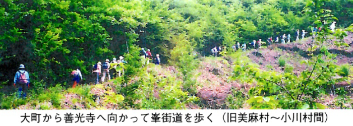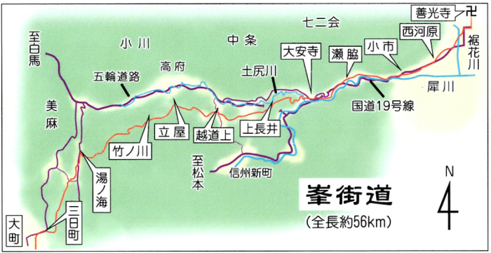 峯街道は安曇・西山・善光寺平を結ぶ生活道として、また善光寺・戸隠への参詣路としても大きな役割を果たしてきた。